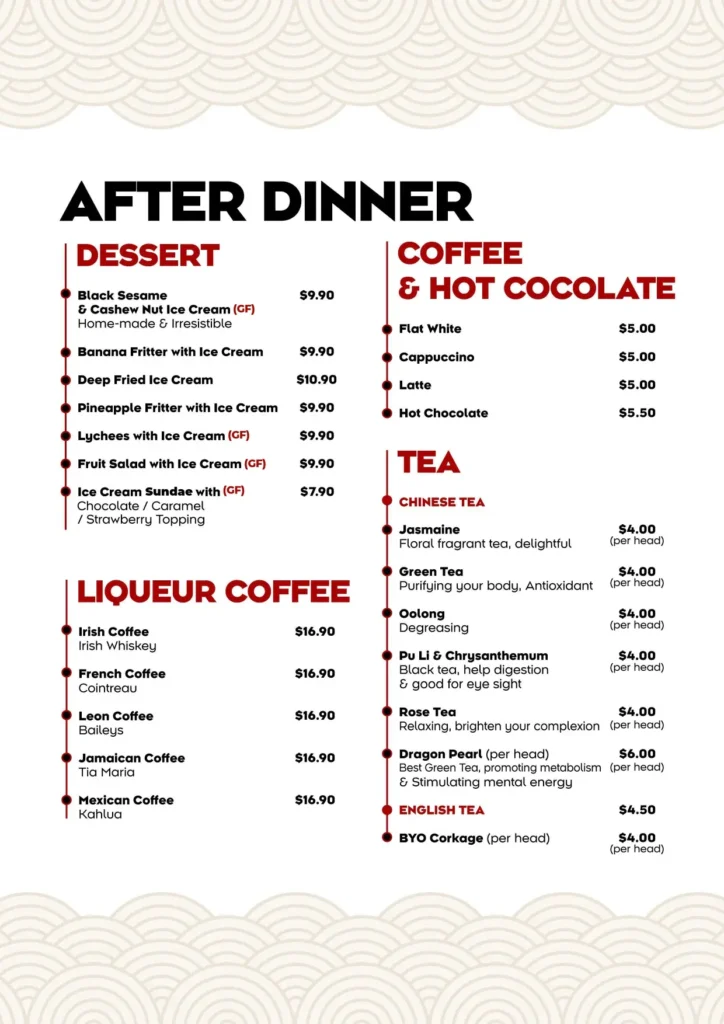 Dine In Menu